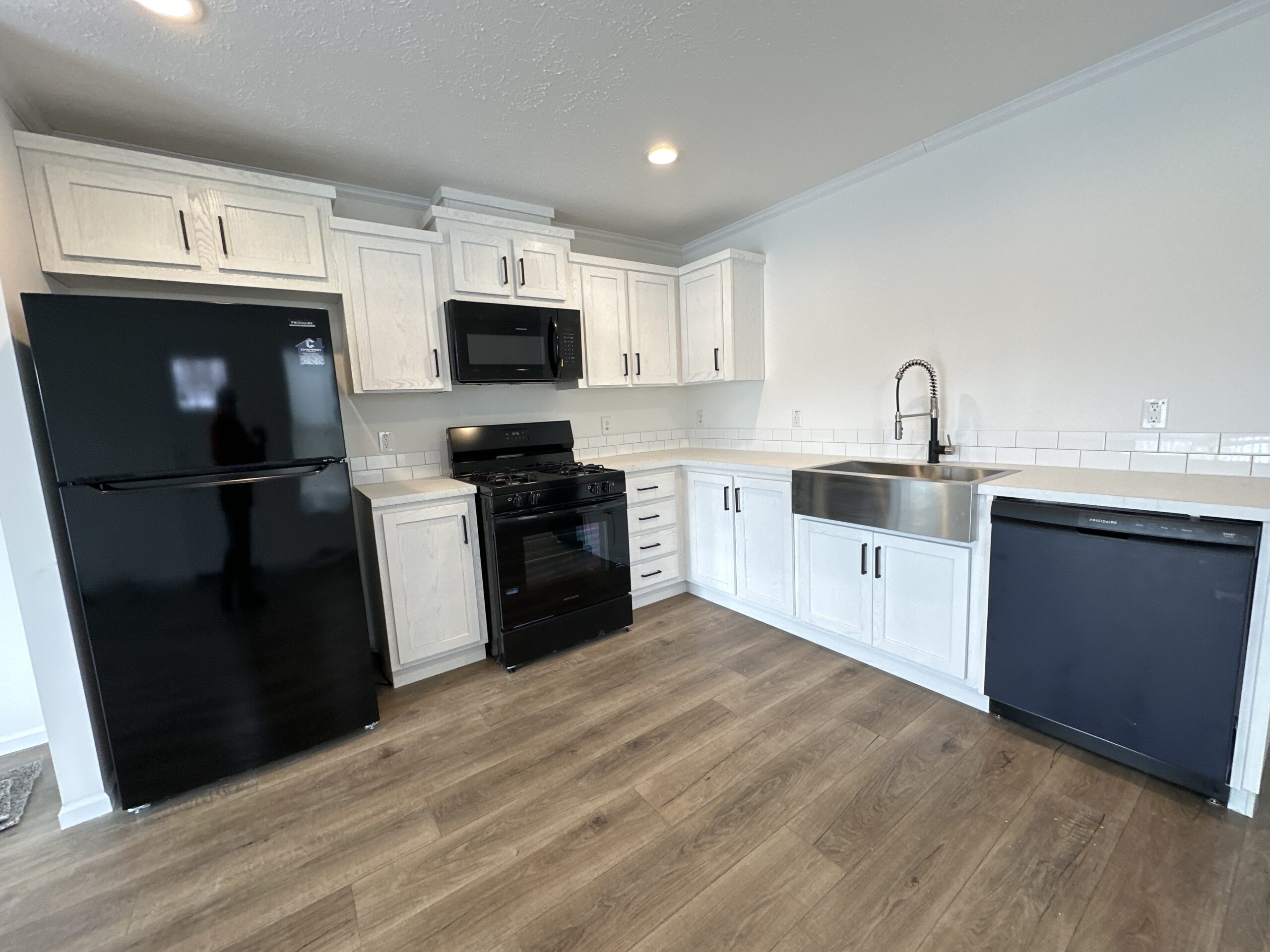 Floorplan features ample space for furniture and an open kitchen ready for a custom island of your choice. Upgraded features include drywall, architectural roof shingles and recessed lighting.